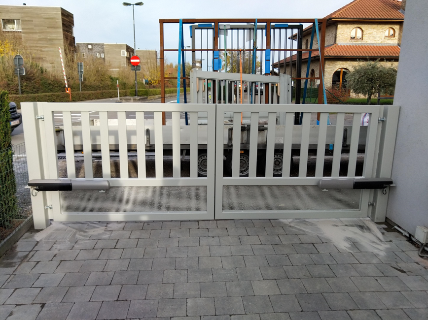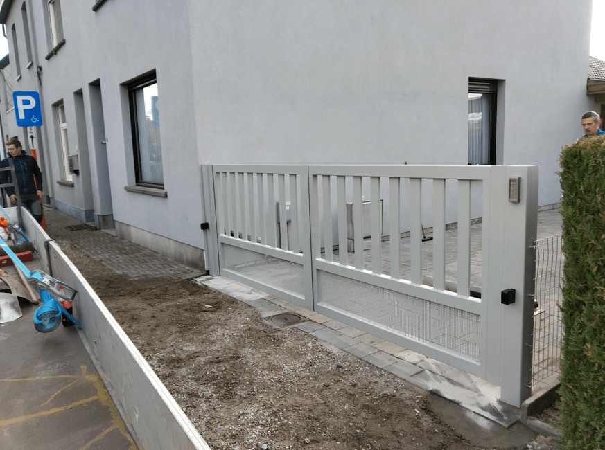 Dit Ghent design bestaat uit een kaderwerk met een horizontale onderverdeling. Bovenaan is het design ingevuld met brede kokers, onderaan met een geperforeerde plaat.
