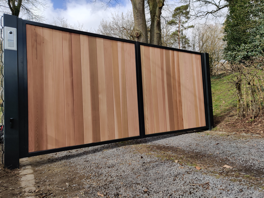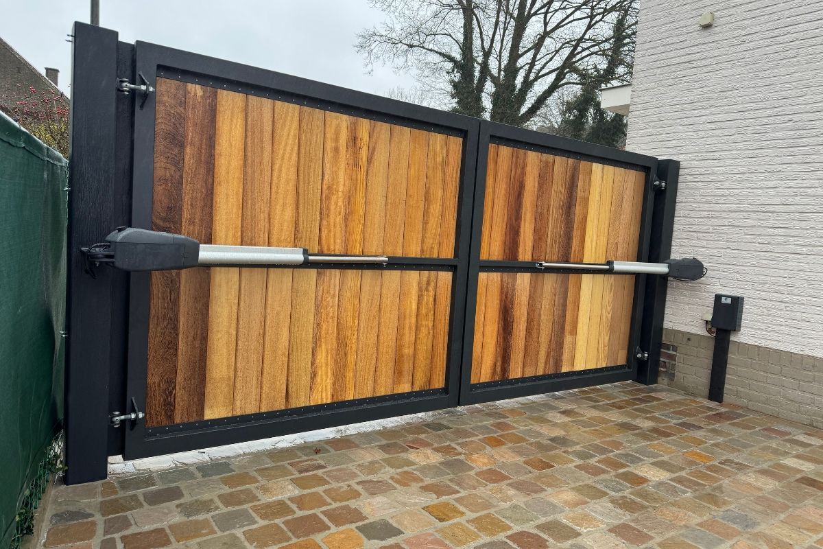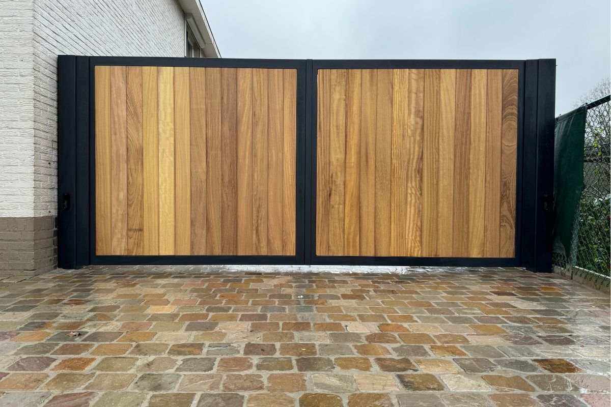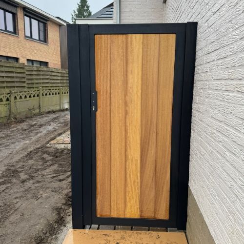 combinatie van een metalen kader met cederhout inleg